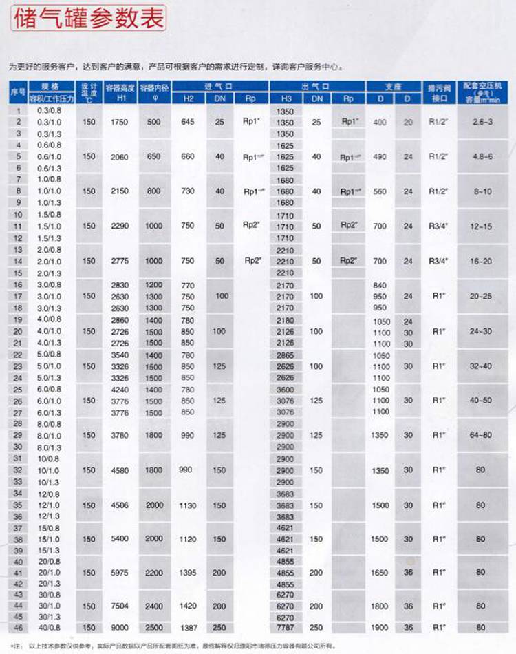 1.客户之前早已在同一流程上使用储气罐,或者储气罐与该流程相近,并且储气罐在使用时功效很好,提议直接参阅原始的储气罐尺寸进行选择。